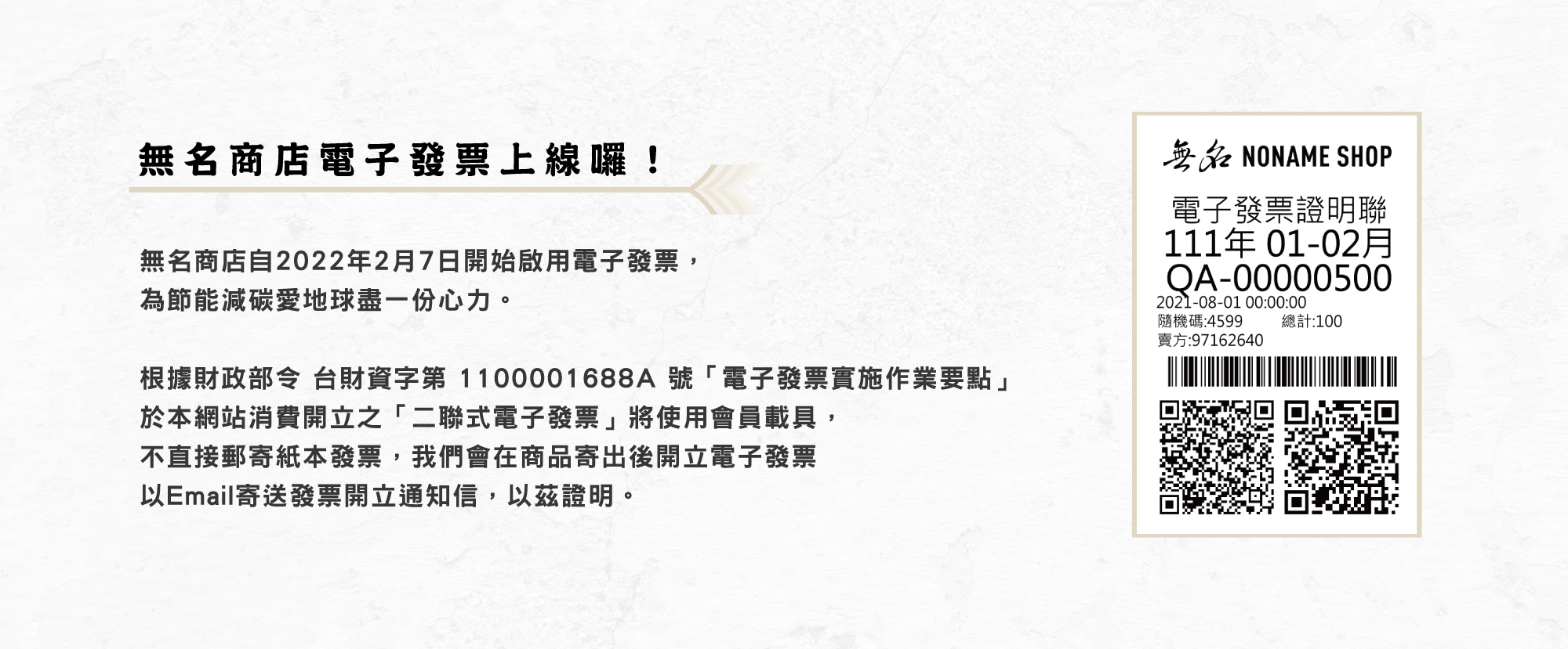 當您下單使用電子發票時,表示您已詳細閱讀、瞭解並同意接受電子發票說明之所有內容