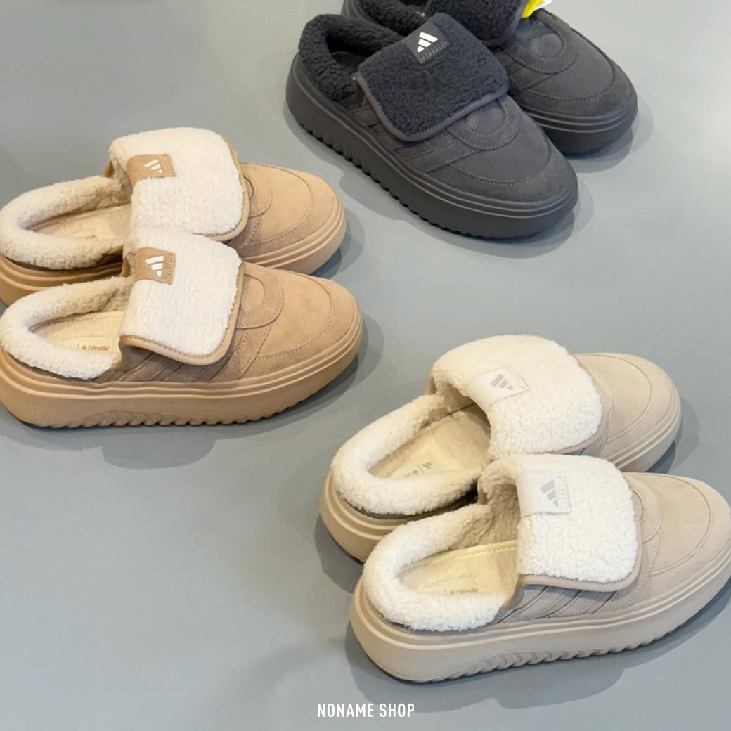 ADIDAS GRAND COURT MULE 翻鞋舌 懶人鞋 毛絨 厚底 麵包 拖鞋 三色 (女款)