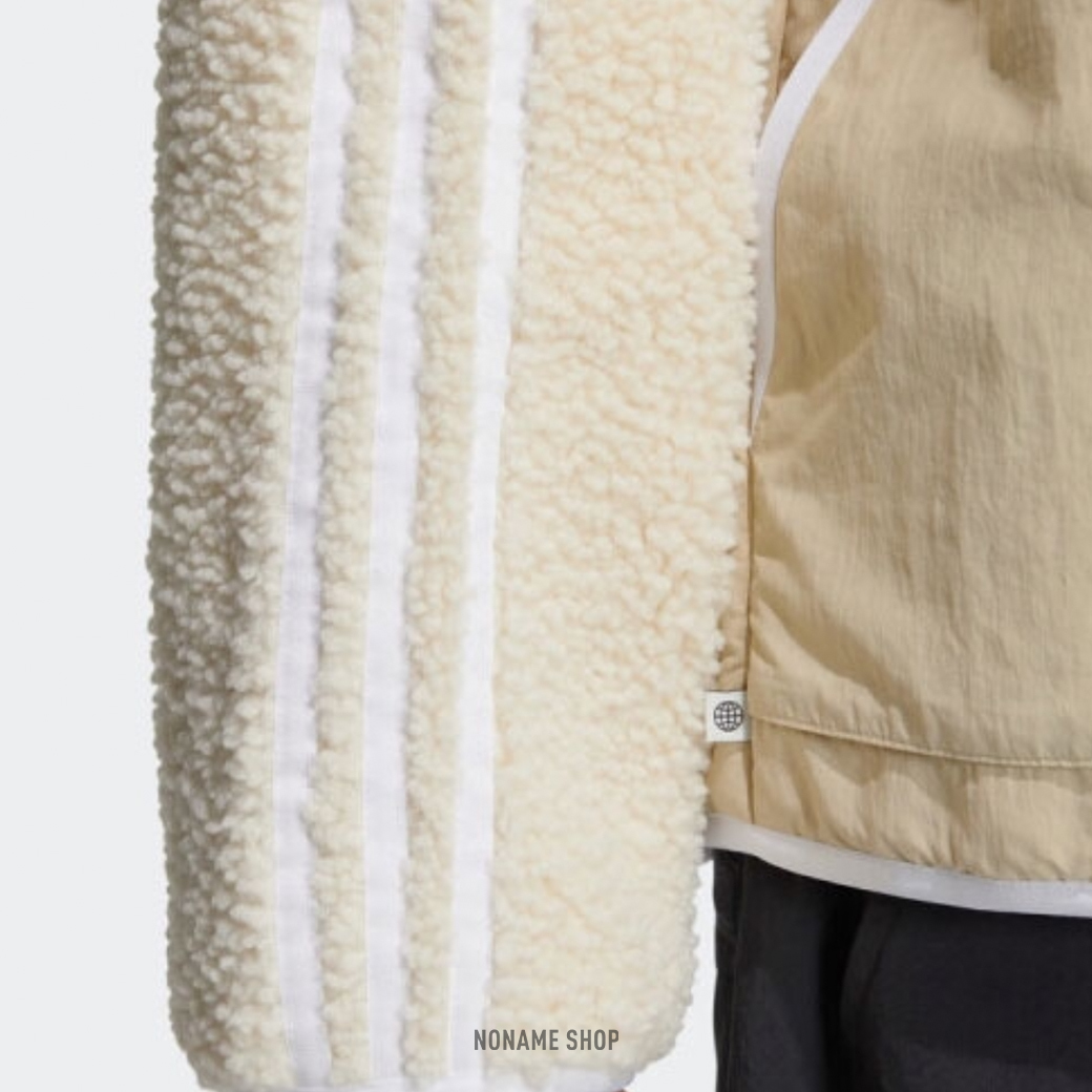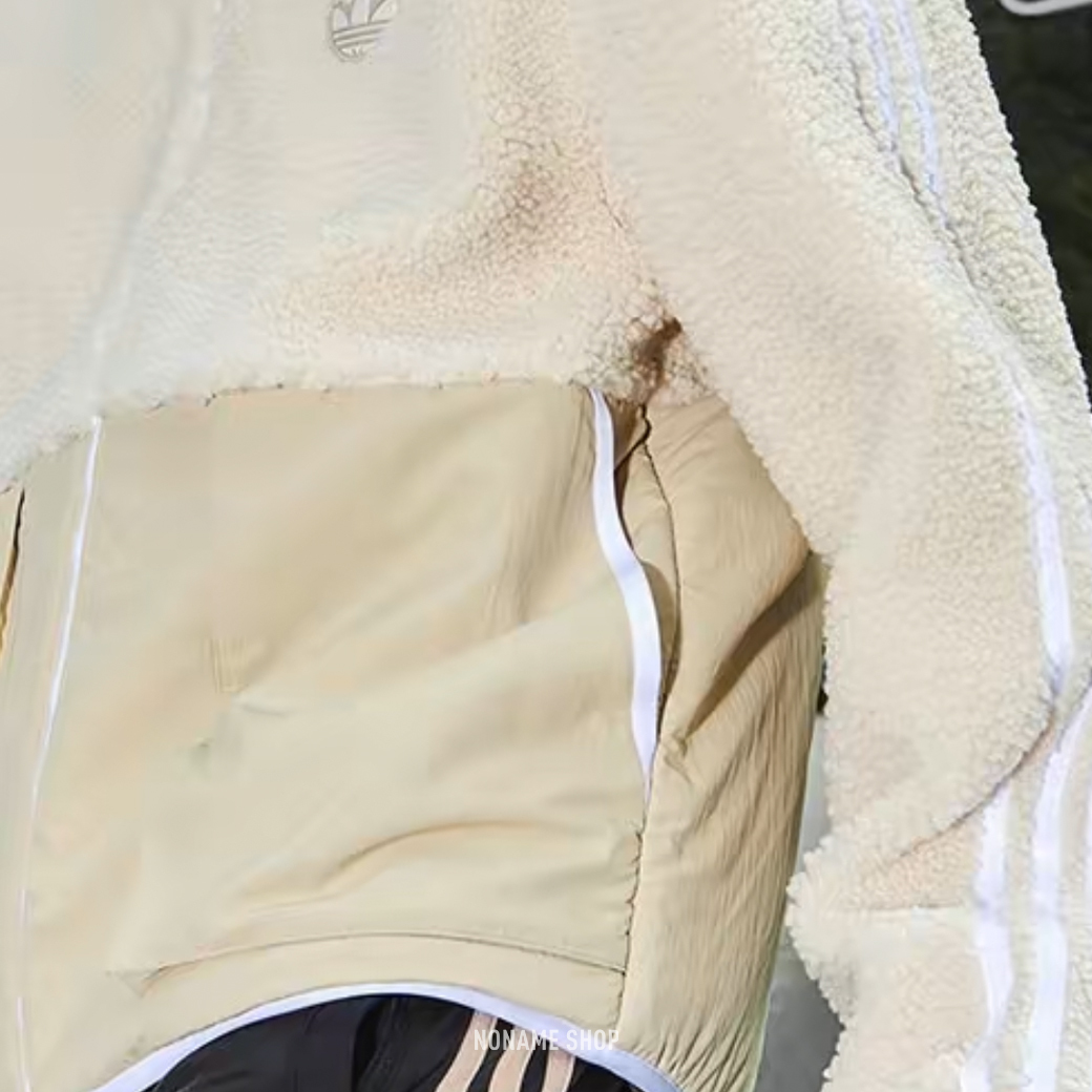 ADIDAS ORIGINAL 羊羔毛 刺繡 異材質 拼接 外套 奶茶米白 (男款)
