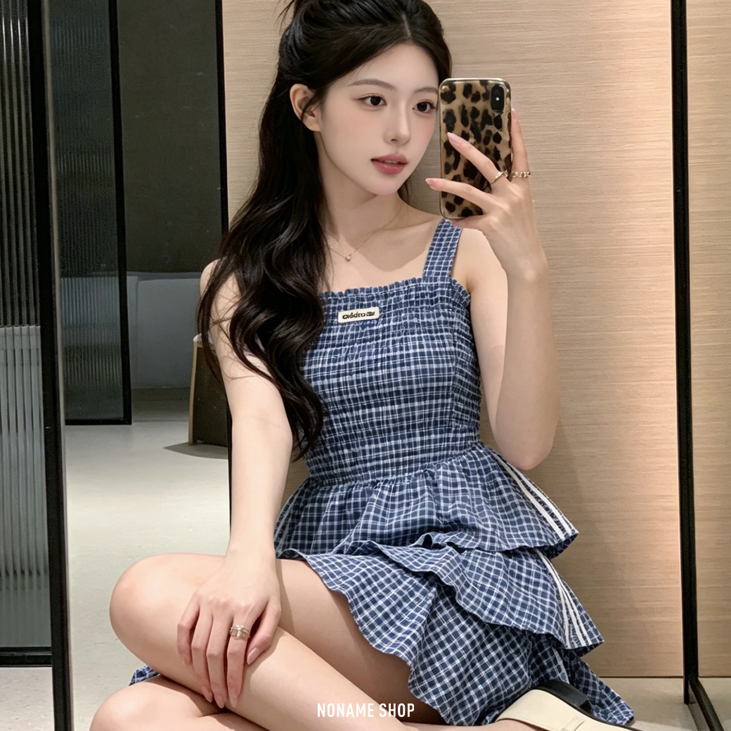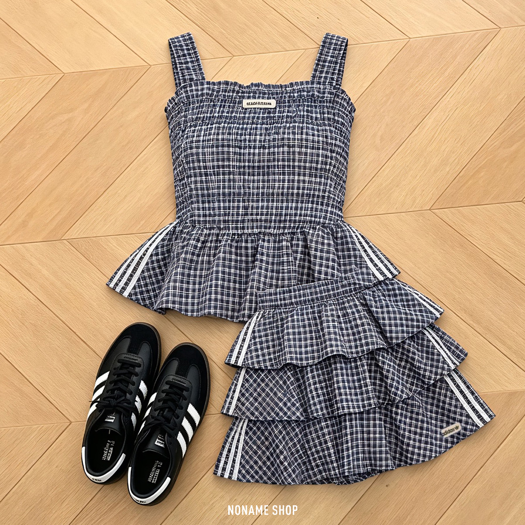 ADIDAS ORIGINALS 三線 MIU MIU風 夏日 藍白 格紋 套裝 背心 短裙 (女款)