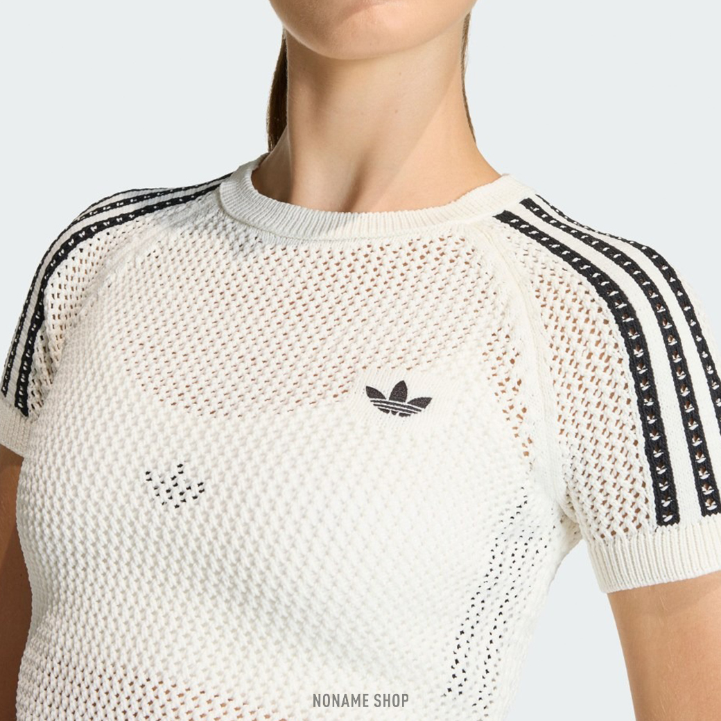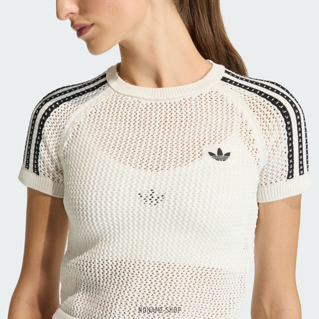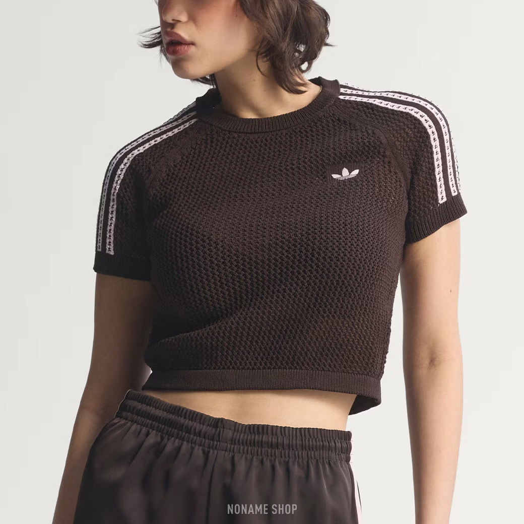 ADIDAS ORIGINALS 三線 透膚 針織 短版 短袖 兩色 (女款)