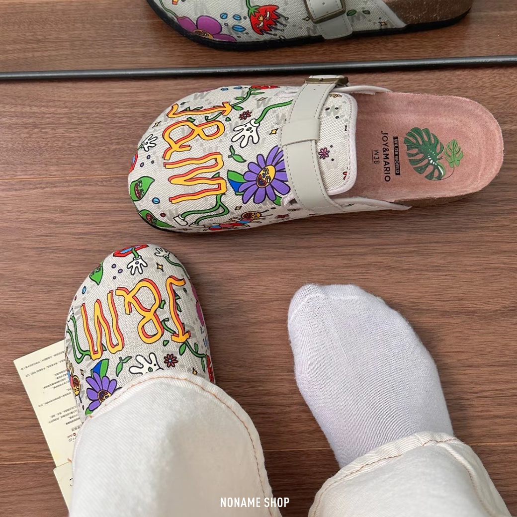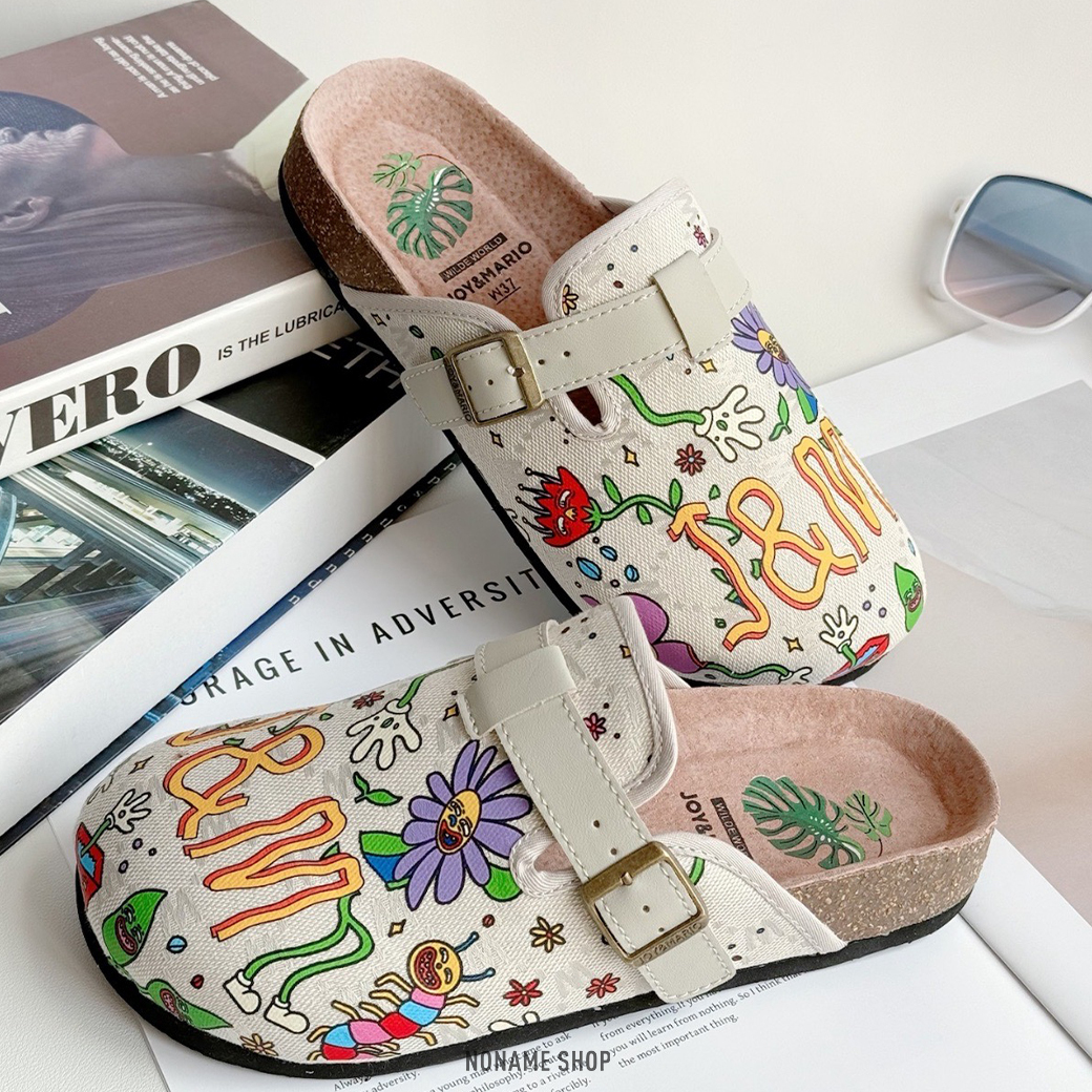 JOY & MARIO 藝術家聯名 印花 夏日 彩繪 勃肯鞋 軟木底 拖鞋 三色 (女款)