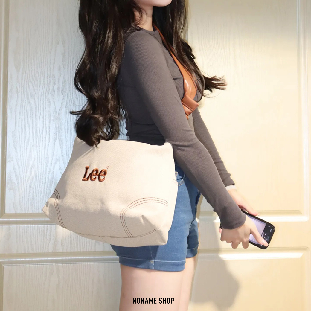 LEE 刺繡 LOGO 帆布包 皮革 扭結 大容量 兩色