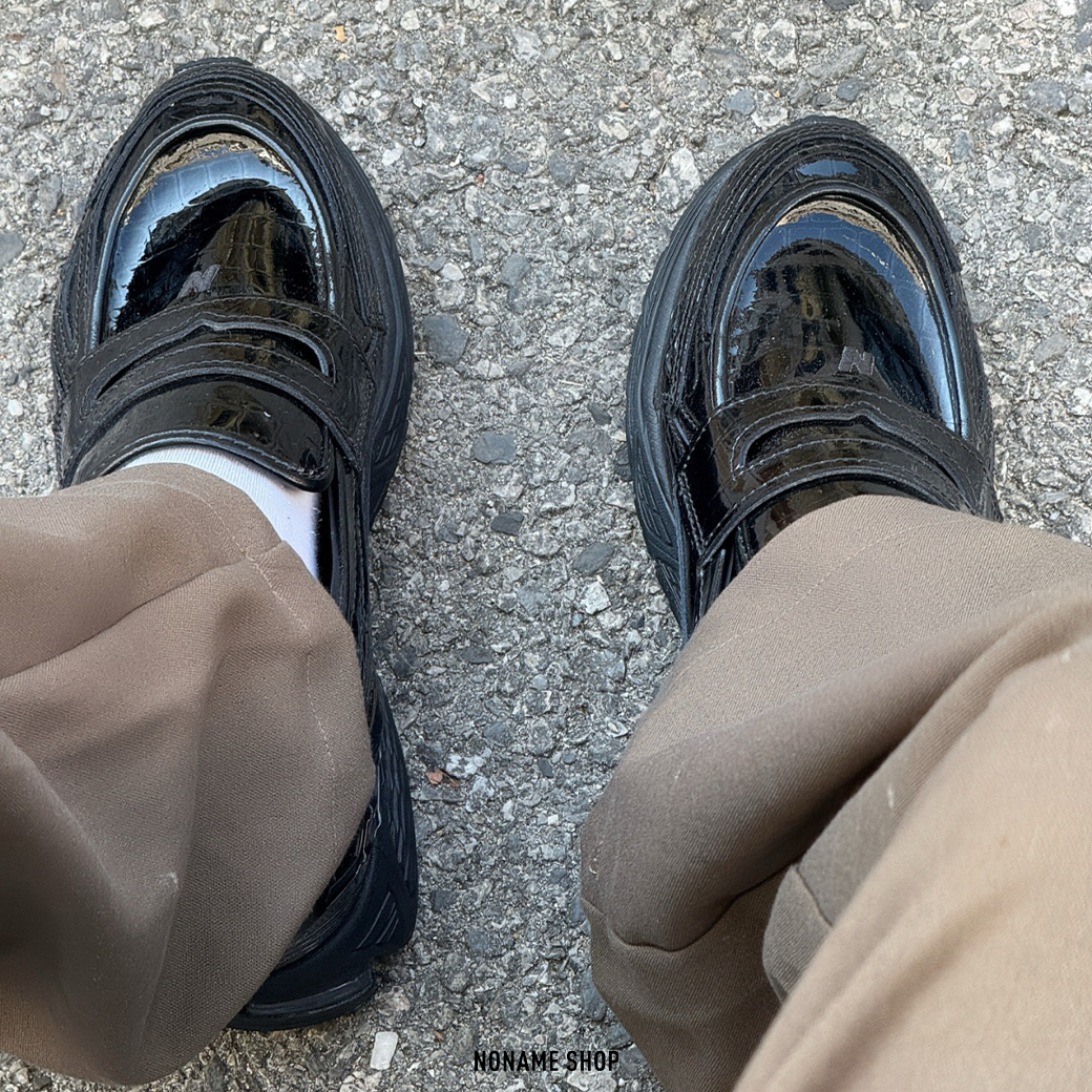 🔹採用全黑漆皮鞋面