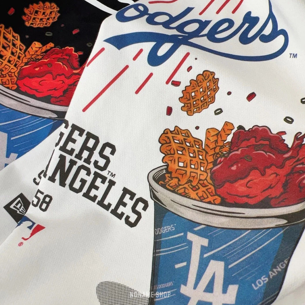 NEW ERA MLB 洛杉磯道奇隊LA 球場美食 爆米花 薯餅 復古印花 短袖 兩色 (男款)