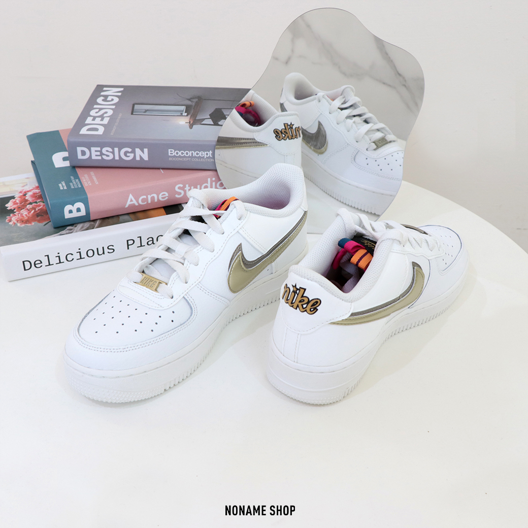 💥出清特價💥 NIKE AIR FORCE 1 LV8 SILVER GOLD GS 雙勾 彩虹 小白鞋