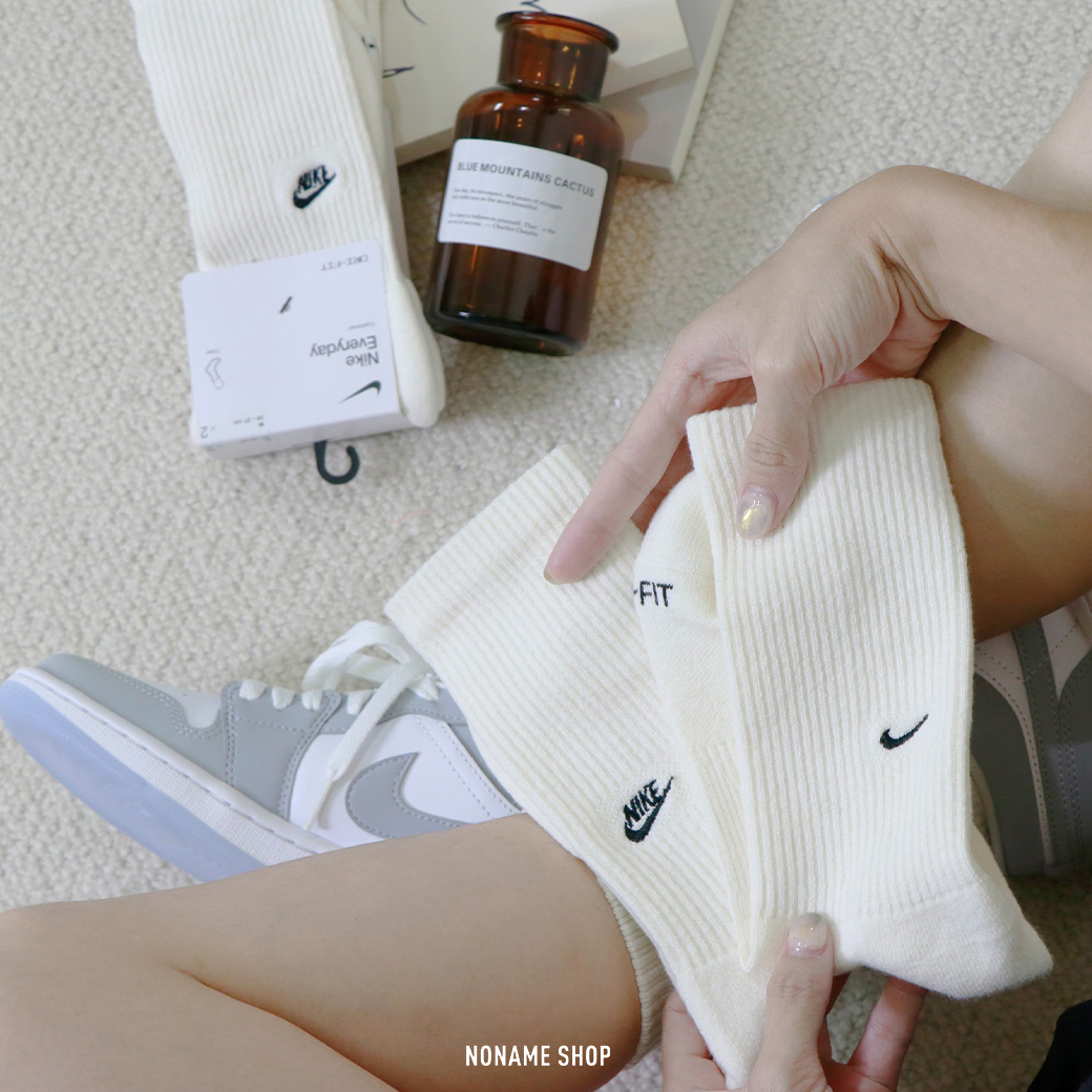 NIKE EVERYDAY CUSHIONED 刺繡 小勾 字勾 LOGO 長襪 襪子 一組兩雙 奶白色