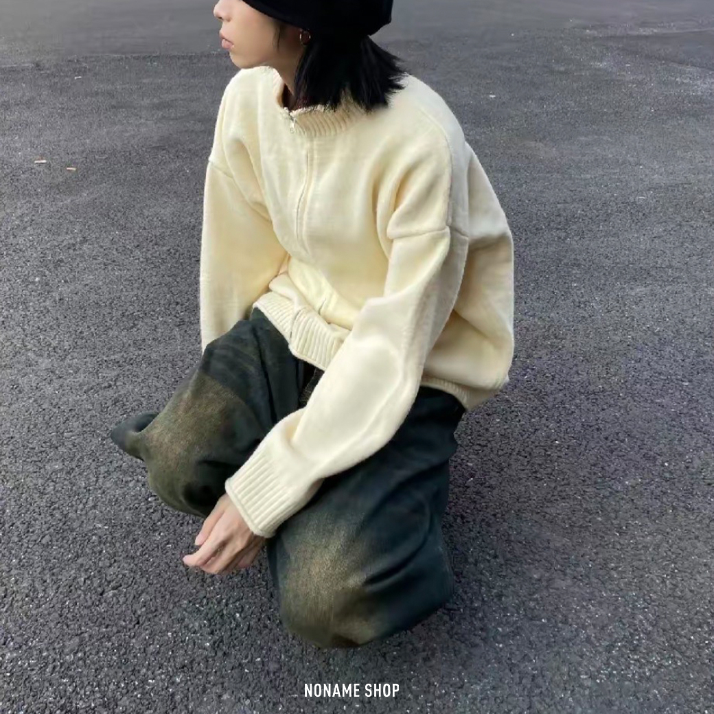 SXSY 簡約 復古 美式 拉鍊 針織 外套 六色 (男/女同款)