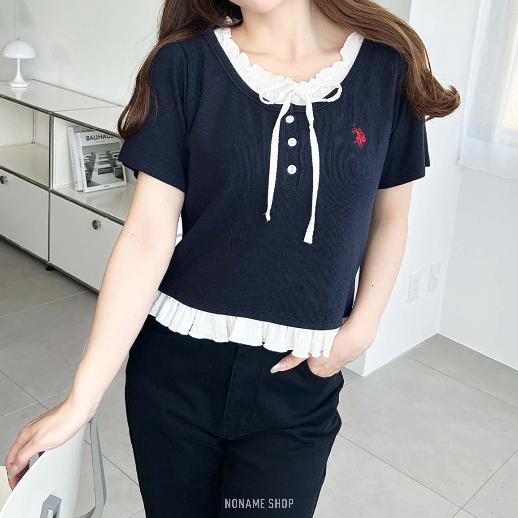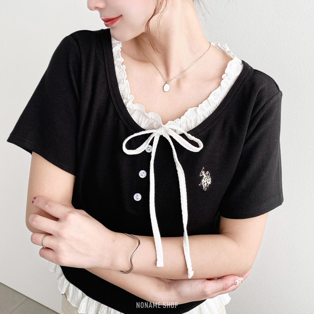 🔹領口的摺邊和前面的緞帶細節非常別緻