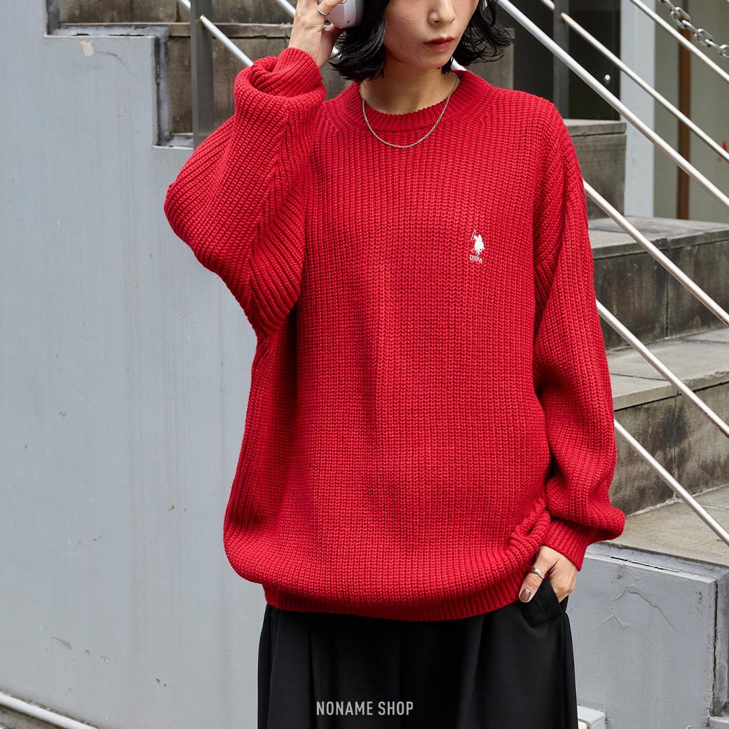 U.S. POLO ASSN 針織 落肩 大學T 七色 (男/女款)